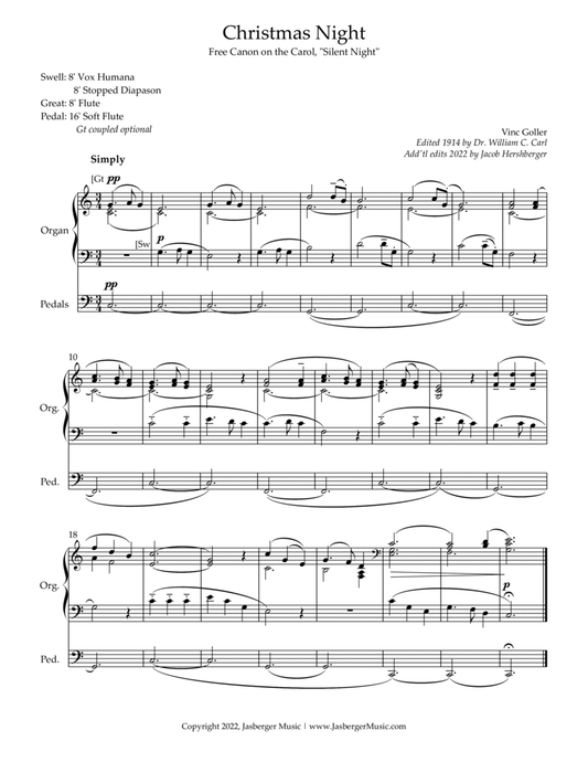 Silent Night Free Sheet Music Canon | Easy Organ Arrangement for Christmas